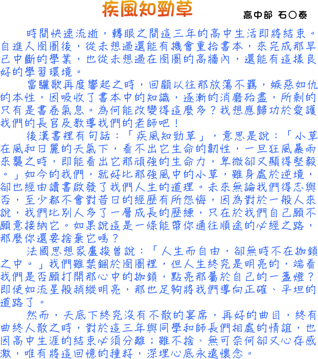 您的瀏覽器不支援JavaScript語法,JavaScript語法並不影響內容的陳述。您可使用按鍵盤上的Ctrl鍵+ (+)鍵放大/(-)鍵縮小來改變字型大小;回到上一頁可使用瀏覽器提供的 Alt+左方向鍵(←) 快速鍵功能;列印可使用瀏覽器提供的(Ctrl+P)功能。